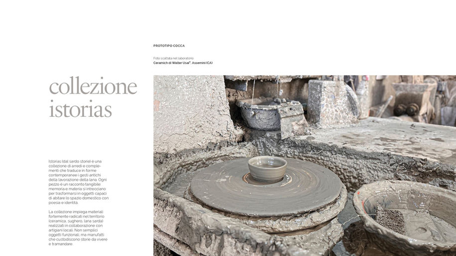 His research moves between memory and gesture, in an attempt to transform the legacy of artisan knowledge into a contemporary language. The materials—ceramic, cork, wool, wood—are never neutral, but alive, bearers of stories and imperfections that become an integral part of the project. Working closely with local artisans, Onnis reinterprets tools and traditions, giving shape to “small domestic architectures” where function meets memory through essential and poetic lines.