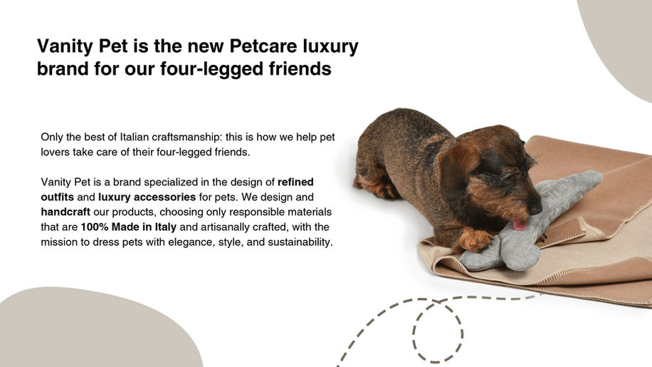 Vanity Pet ha scelto di utilizzare materie prime di alta qualità provenienti da aziende che progettano e producono in Italia. Ogni prodotto è il risultato della collaborazione tra laboratori e piccole aziende artigiane con una grande esperienza e un'ottima manualità. Ogni articolo è realizzato a mano con la massima cura e attenzione, rendendo i nostri prodotti fonte di orgoglio e soddisfazione.